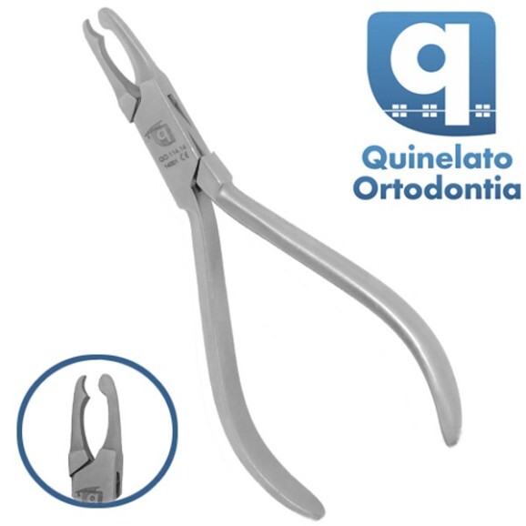 Alicate para contornear bandas especialmente de molares. Pelo fato de ter uma de suas extremidades em formato convexo e a outra em côncavo ajusta-se a forma anatômica das coroas dos dentes posteriores quando se posiciona a extremidade côncava do alicate na face externa da banda. -