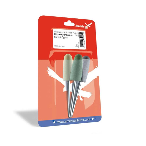 Minikit de Polidores de Acrílico PM Ultra-Technique Bastão Extra Grande/Grande/Médio/Fino - American Burrs